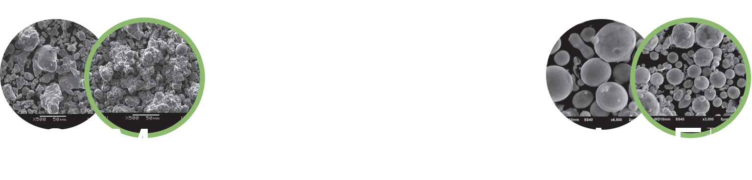 VOF 工藝粉末與常規水霧化粉末 SEM